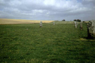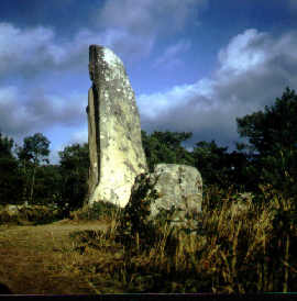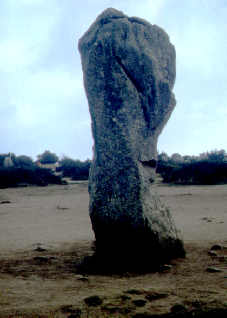 und betroffen stehen wir vor den sich langsam emporreckendem Heer unförmiger Felsblöcke aus grauem angewittertem Granit, diese steinerne Zeugnise jener fernen mystischen Religion, den Alignemants von Kermario bei Carnac. Es handelt sich hier nicht um isolierte Monoliten, sondern um Gruppierungen, in zehn Reihen stehen tausende Menhire auf einer Länge von über einem Kilometer |